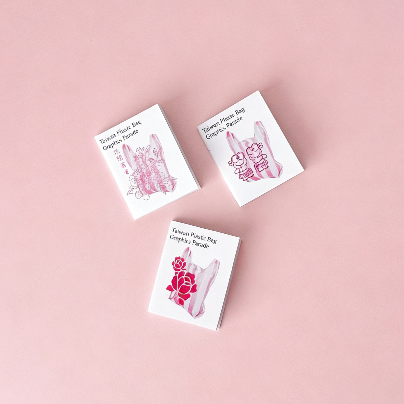 我們蒐集、擷取這些台灣日常裡的塑膠袋圖案一一做成三冊小書