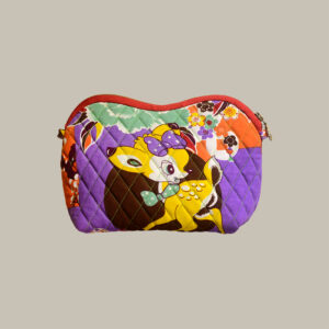 不同於以往常見的斜背包剪裁,而是獨特的弧形設計,不僅保護度提升,在容量方面也因圓鼓的設計大幅增加,同時活潑可愛的小鹿花布也為平凡的斜背包點綴出不同的氛圍。